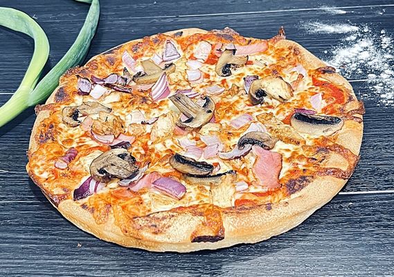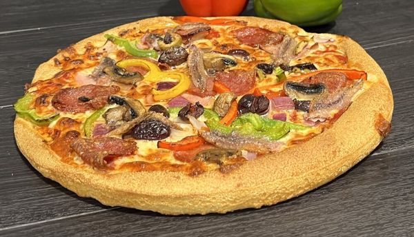 napoli sauce, ham, pepperoni, salami, onion, capsicum & mushrooms