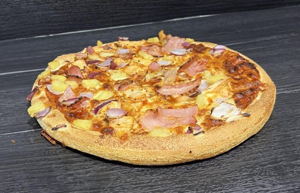BBQ sauce, roasted fresh Inghams chicken, bacon, onion, pineapple and mozzarella